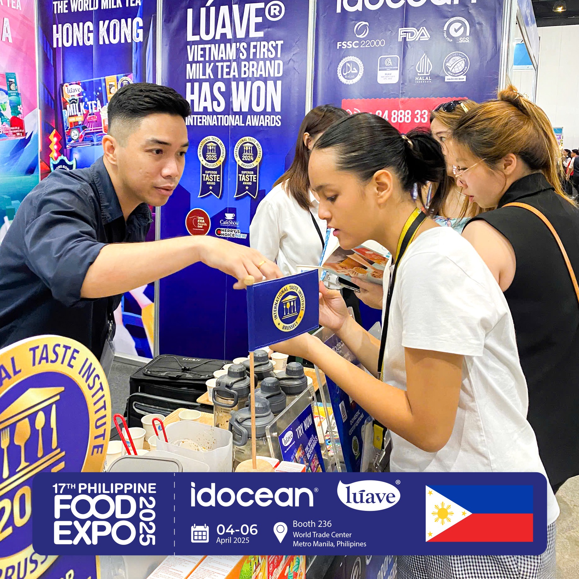 Tại Philippine Food Expo 2025 – một trong những sự kiện F&B lớn nhất tại Philippines, IDOCEAN đã tạo nên dấu ấn mạnh mẽ khi giới thiệu dòng thức uống hòa tan Lúave – đại diện cho lối sống trẻ trung và hiện đại của người Việt.